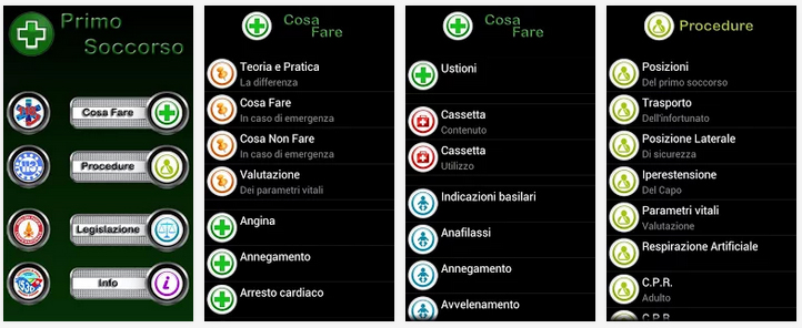 Un’App concepita non per l’utilizzo in caso d’emergenza, ma per divulgare la conoscenza del primo soccorso. Da avere sempre a portata di mano nella speranza di non doverla mai usare, ma interessante da leggere e imparare. Contiene numerose diagnosi, con sintomi e interventi, e tutte le procedure del primo soccorso complete di immagini e filmati come la rianimazione, la respirazione ecc. Contiene le normative sul primo soccorso, anche in ambito lavorativo, aggiornate secondo le ultime disposizioni americane ed europee. Utili i pulsanti per chiamare direttamente polizia, vigili, 118 e guardia costiera (l’app chiede sempre i permessi per le telefonate). Inoltre contiene sezioni specifiche per sub, montagna e pediatria.